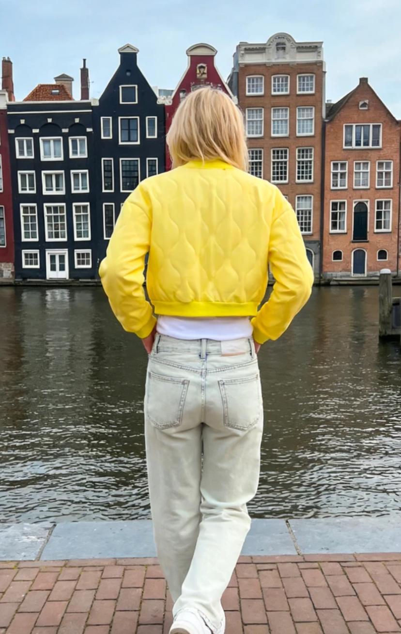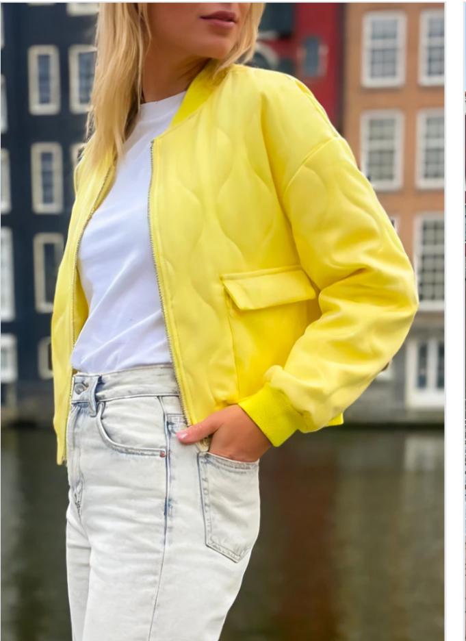 Deze trendy gele bomberjacket is een echte musthave voor in je garderobe.