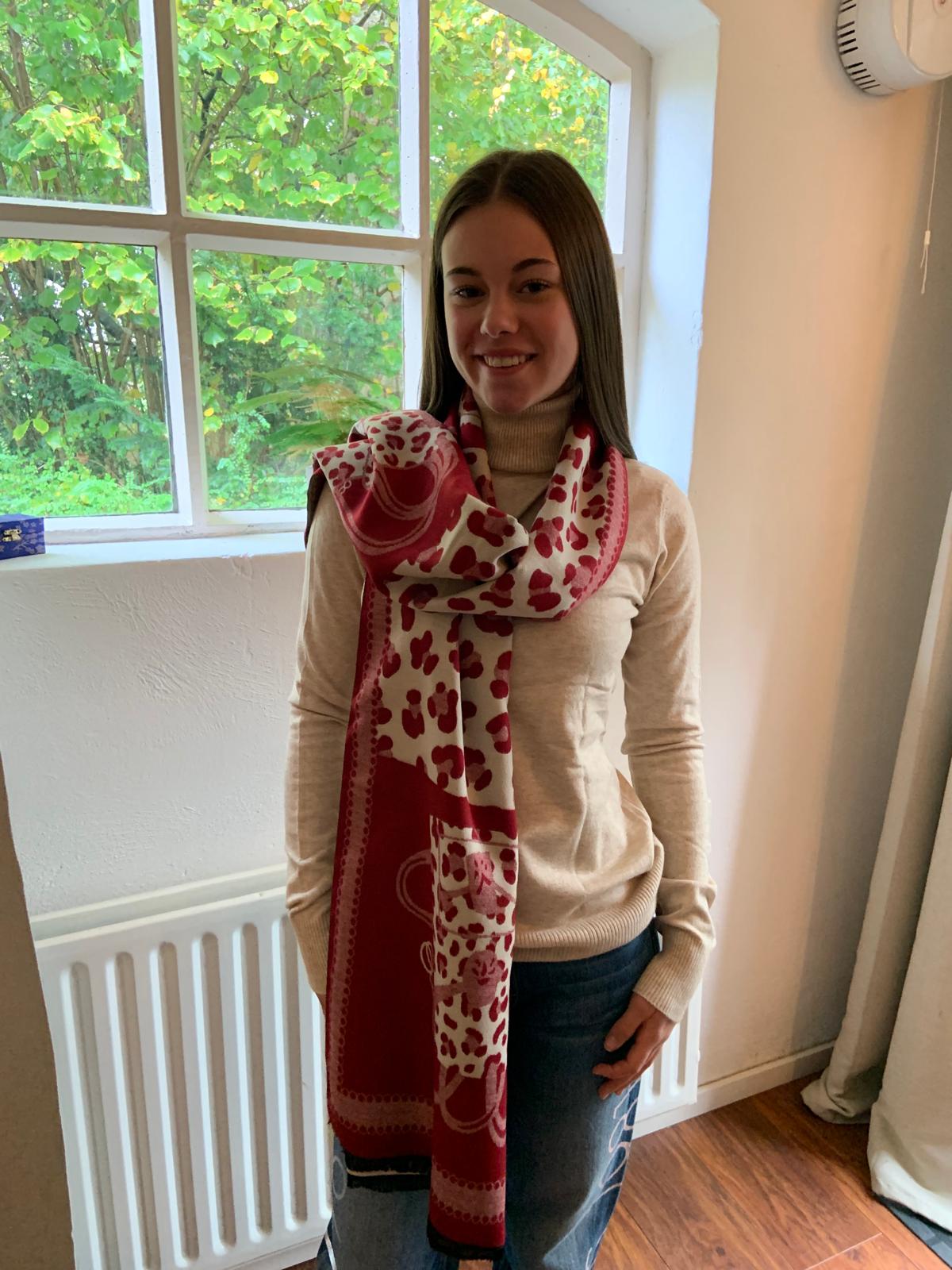 Deze prachtige burgundy leopard sjaals is perfect om je outfit flair te geven.