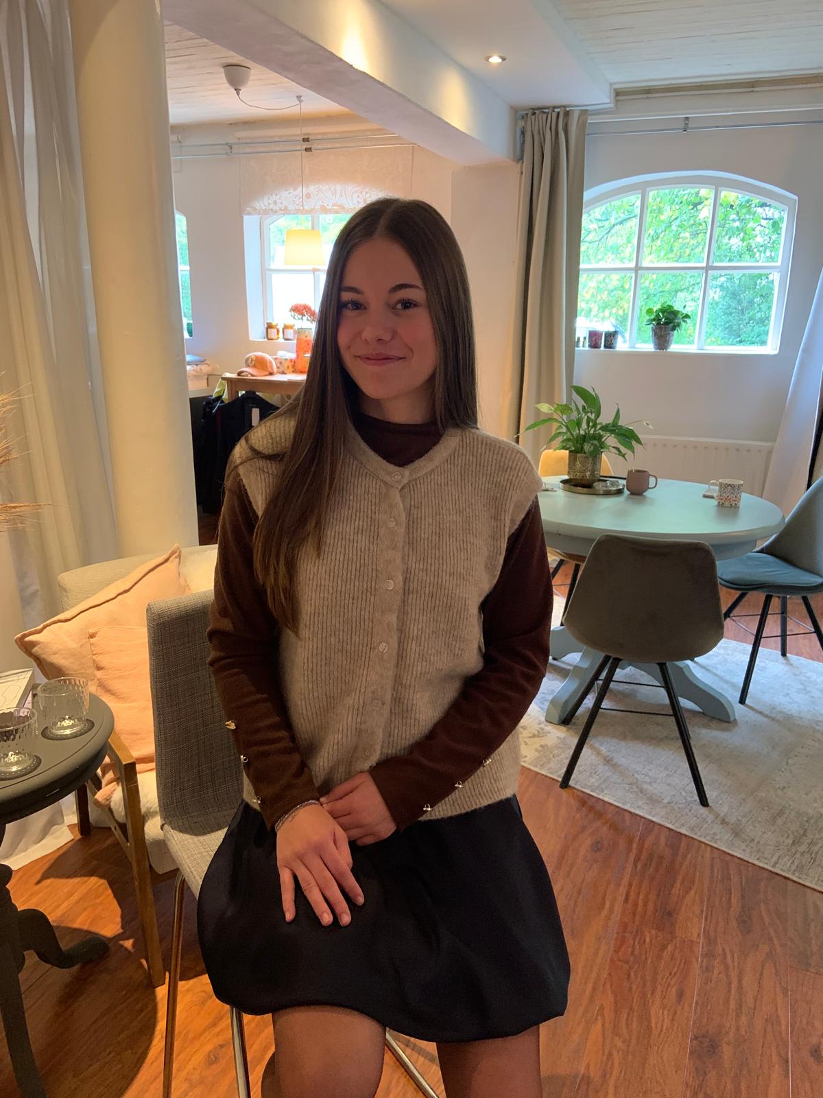 Deze prachtige gebreide gilet is perfecte toevoeging aan elke garderobe.