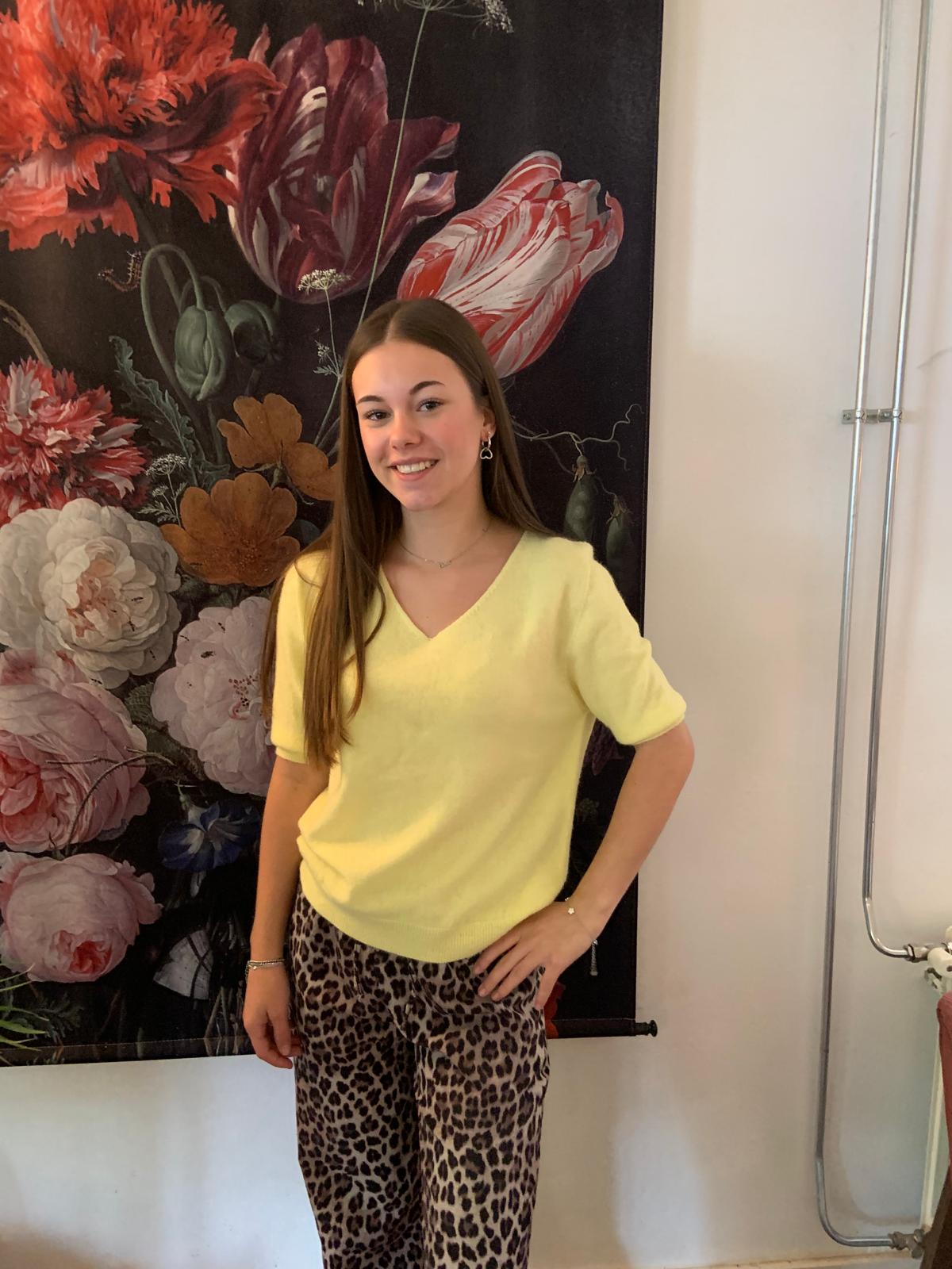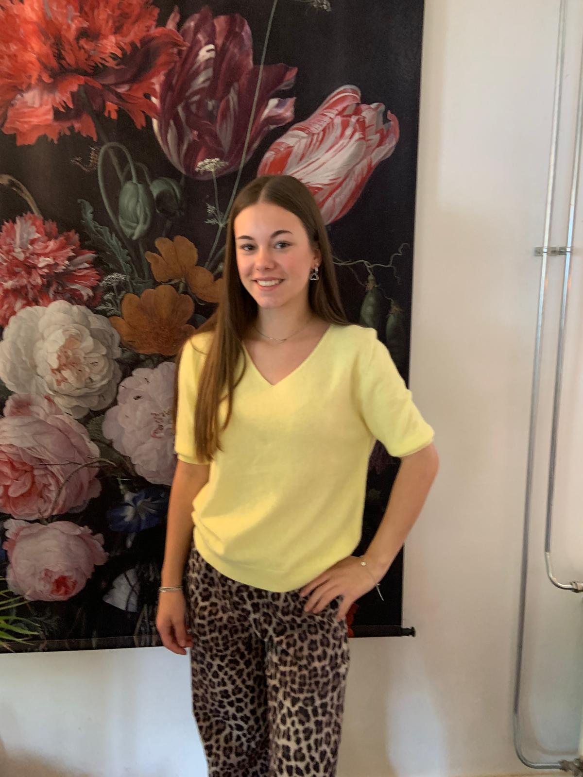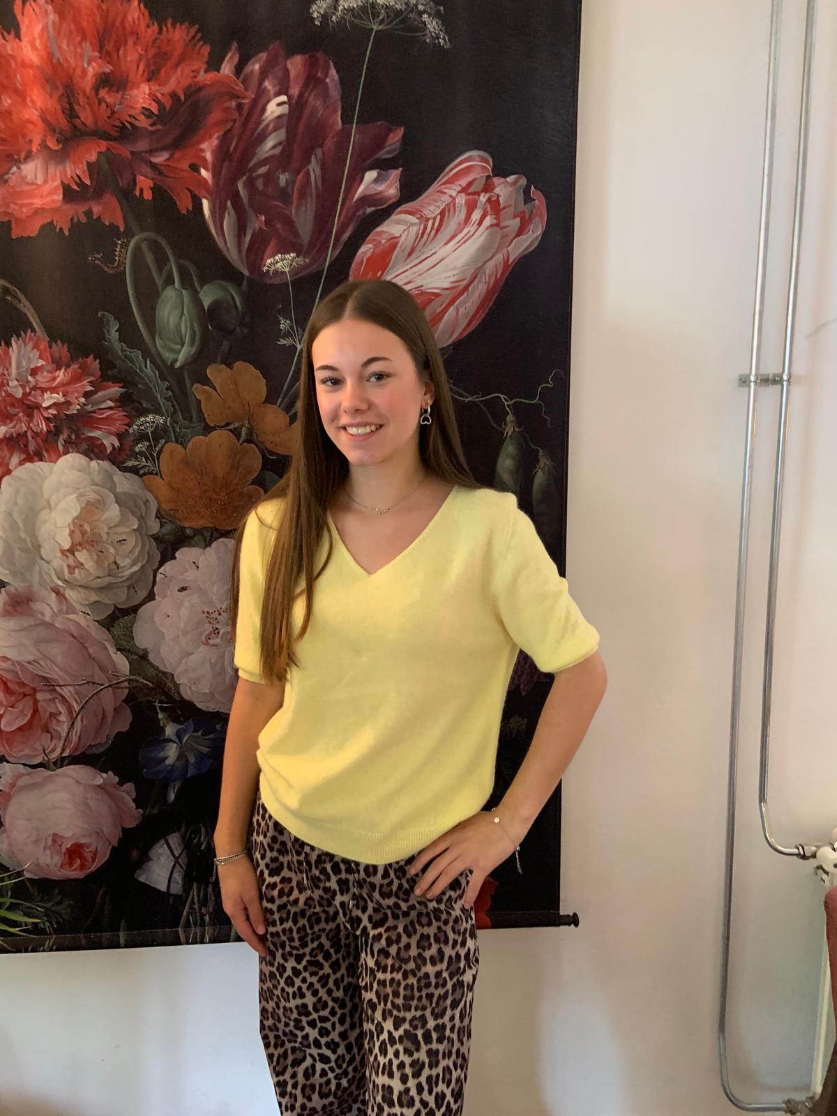 Soft knitted trui€32.50 De gebreide trui met V-hals en korte mouwen. In de kleur Yellow heeft een zachte kwaliteit en is one-size pasvorm. De trui kun je overal op combineren vanaf maat 36-42 Fall/winter 2025-2026. Op voorraad Soft knitted trui aantal Toevoegen aan winkelwagen Gerelateerde producten Bomberjack bloemen €45.00 flower oorbellen €14.95 Telefoon tasje €6.95 Turquiose oorbellen €12.95