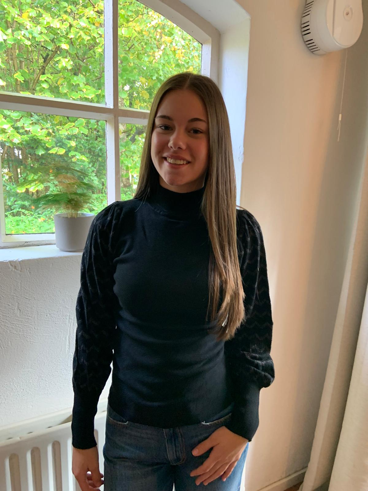 De trui heeft een mooie pasvorm die makkelijk te combineren is op een jeans als een elegante rok.